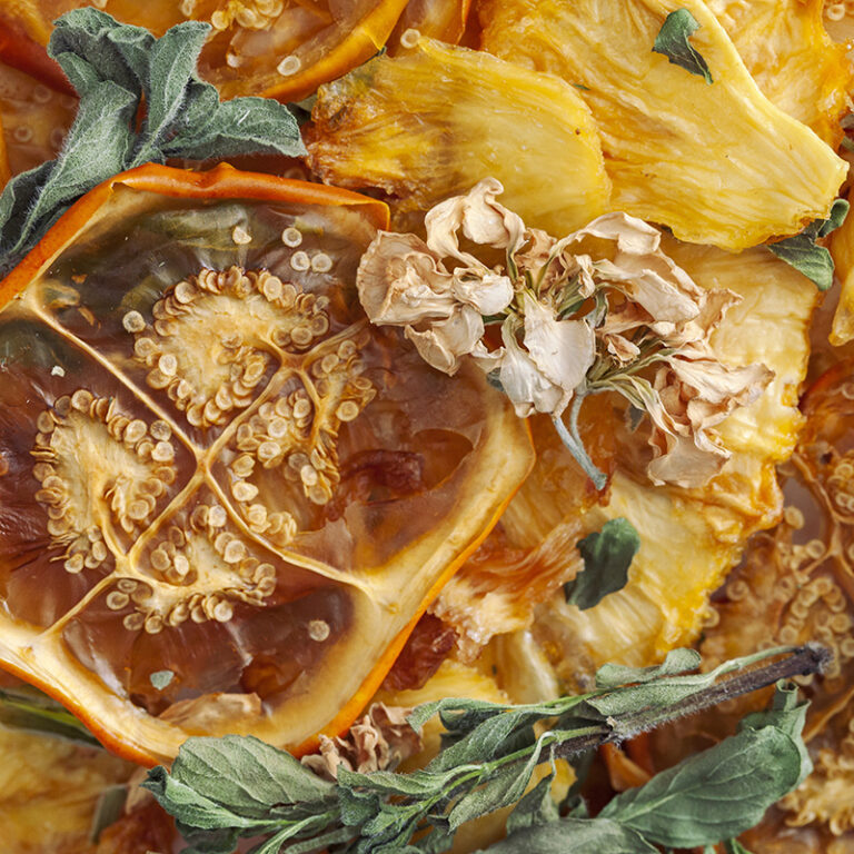 Nuestra serie botánica es un viaje sensorial donde se entrelazan los ingredientes más poderosos y diversos. Capturamos el espíritu vibrante de flores, la profundidad de hierbas aromáticas milenarias y la explosión vital de frutas deshidratadas.