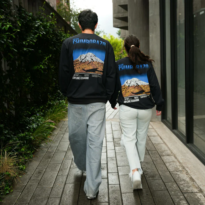 Lleva contigo la fuerza del Chimborazo 🌋✨. Una camiseta negra, hecha con 100% algodón orgánico, inspirada en los paisajes andinos y pensada para quienes aman la naturaleza y el diseño local.”